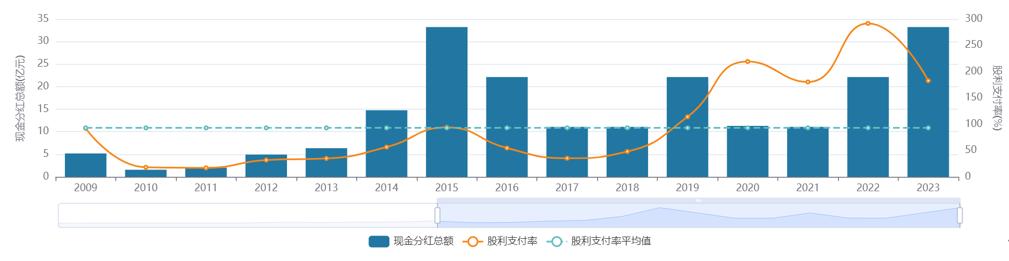 分红方面,宇通客车非常慷慨。从2019年开始,每年股利支付率均超过100%,2022-2023年更是高达292%、183%。