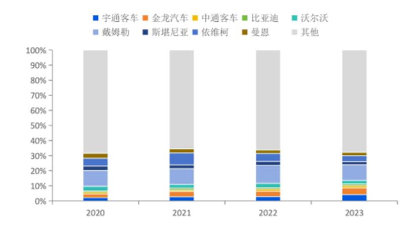 图:2020-2023年海外客车市场格局,来源:国海证券