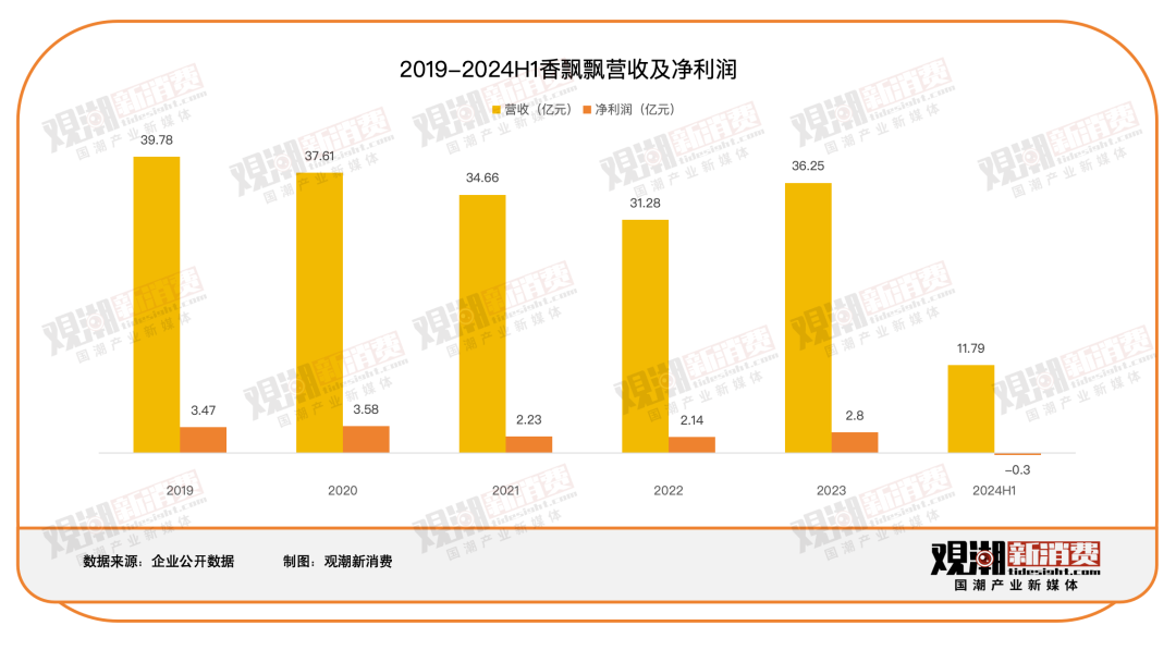 其中,香飘飘在2023年营收36.25亿元,初步完成考核目标,进入职业经理人时代;而2024年半年报出炉后,香飘飘要在下半年实现30亿元以上的营收才能再度完成考核目标,这几乎是不可能完成的任务。