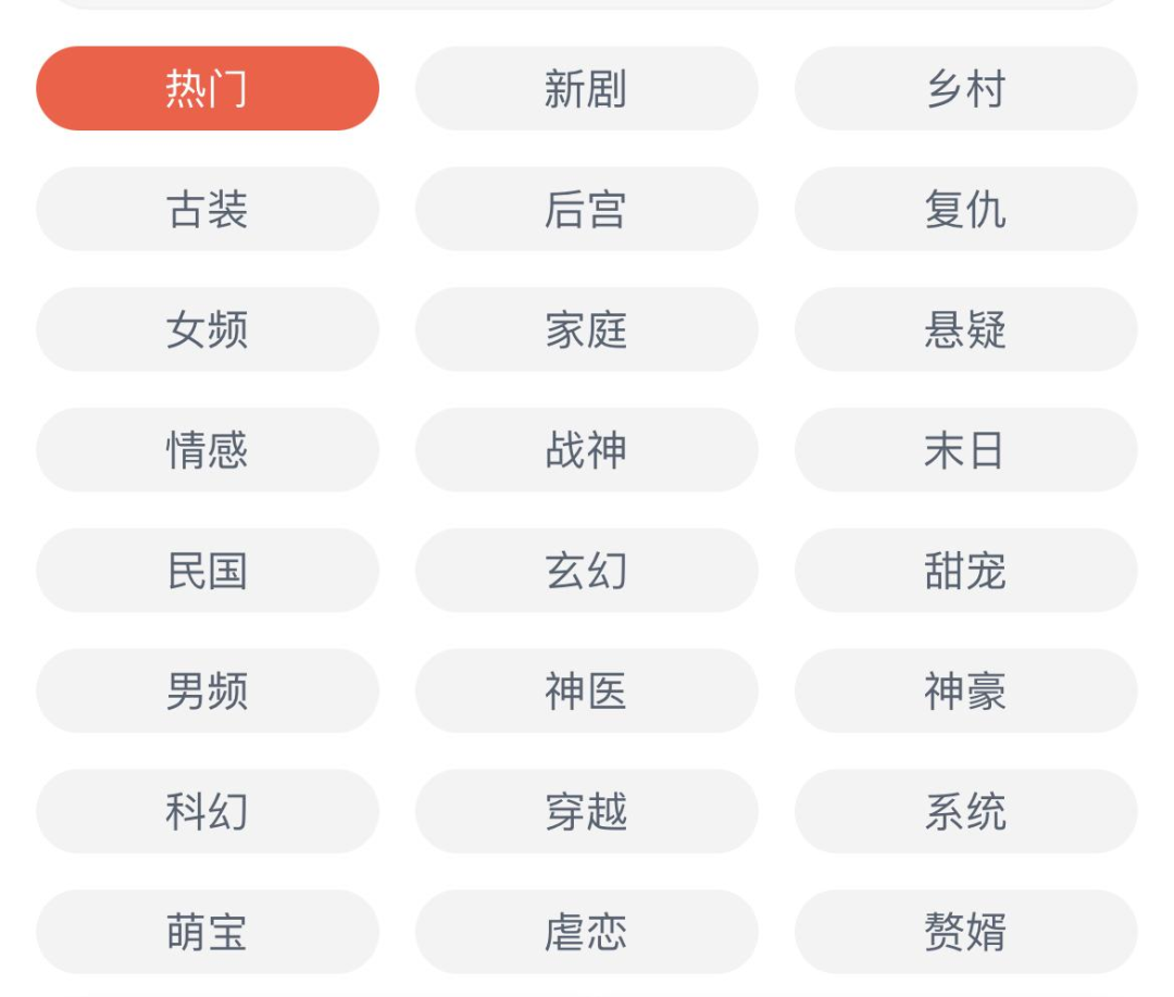 传统的短剧题材,横向上,以受众性别作为分水岭,分为“男频”和“女频”两个大类。在两个大类之下,根据主线剧情的发展,“虐恋、甜宠、闪婚、萌宝、穿越、重生、战神、神豪、神医、赘婿”分门别类,进入各自的细分领域。