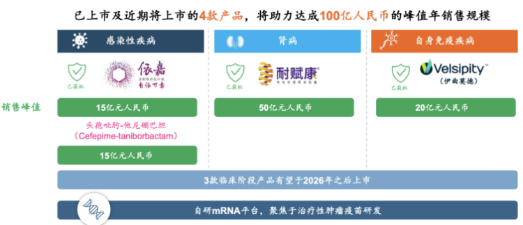 其中,头孢吡肟-他尼硼巴坦是同类最佳β内酰胺类/β内酰胺酶抑制剂(BL/BLI),预计2025年递交上市申请,成为抗感染领域的另一把“尖刀”。
