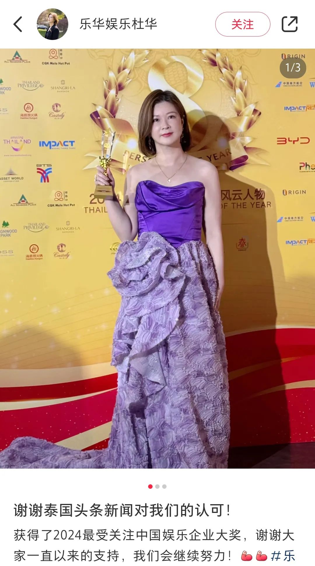 本月初,乐华娱乐老板杜华、旗下艺人BOYHOOD、吴宣仪、NAME,刘宇等内娱艺人纷纷现身2024泰国头条新闻年度风云人物颁奖礼盛典,而这一颁奖礼也是由泰国亚洲大众集团、泰国头条新闻、曼谷杂志等本土媒体联合举办。