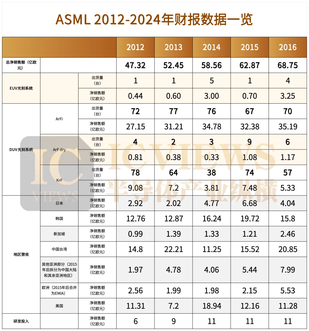 笔者翻阅ASML财报,整理了其自2012年开始的出货数据。ASML出货与其不断成长的光刻历程息息相关。