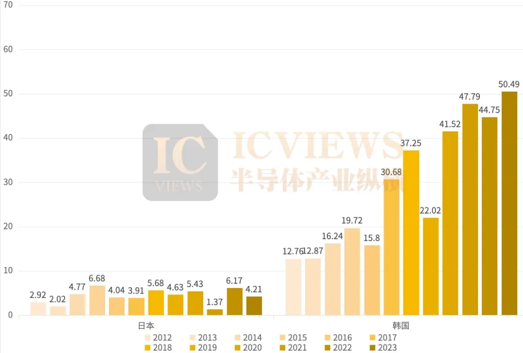 韩国的光刻机购买金额,从2018年到2019年有一个巨大的下滑,但需要注意的是,其2017年、2018年的金额达到30亿欧元,相较之前15亿欧元翻了一倍。2019年正是上一个