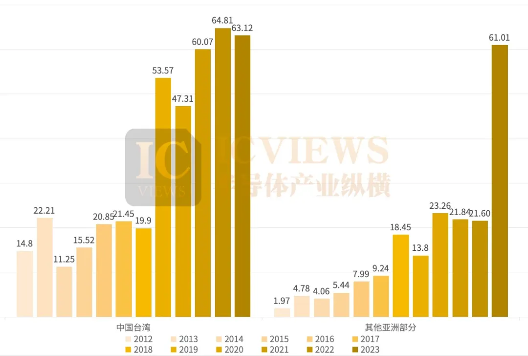2012年开始,韩国、中国台湾地区、美国对于ASML光刻机的购买力是比较强的。当时中国大陆被列为亚洲其他地区,进而计算销售额。自2015年后,由于中国大陆购买金额增长,被ASML财报再单拎出来,以上2015年后的亚洲其他地区数据实际为中国大陆的数据。