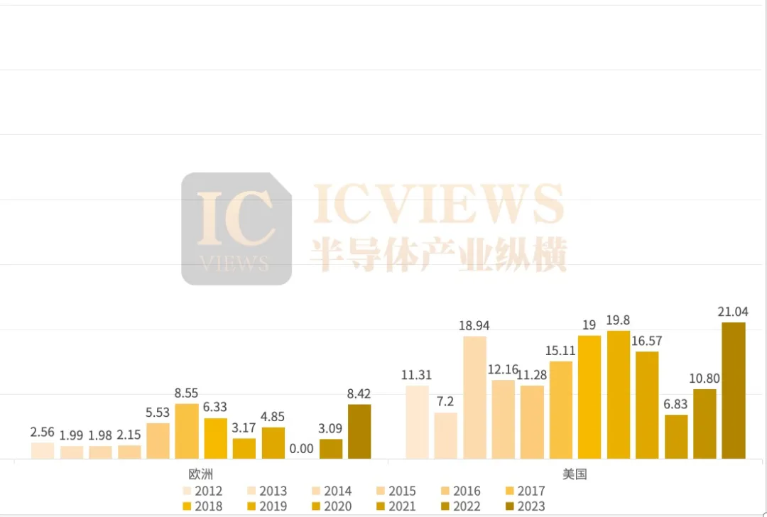 中国大陆地区对于光刻机的购买金额一直维持在20亿欧元左右,但2023年暴涨了61亿欧元,再次印证了前文所述,大陆只能在禁令下来前,现行购买部分光刻机。