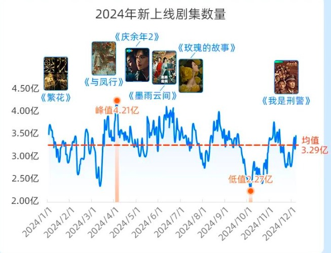从年初《繁花》引爆市场,到《与凤行》《庆余年第二季》《墨雨云间》《玫瑰的故事》极致拉动市场大盘,再到年末《永夜星河》《我是刑警》《九重紫》等剧奋力突围,实现了今年国剧发展的三个高峰期。