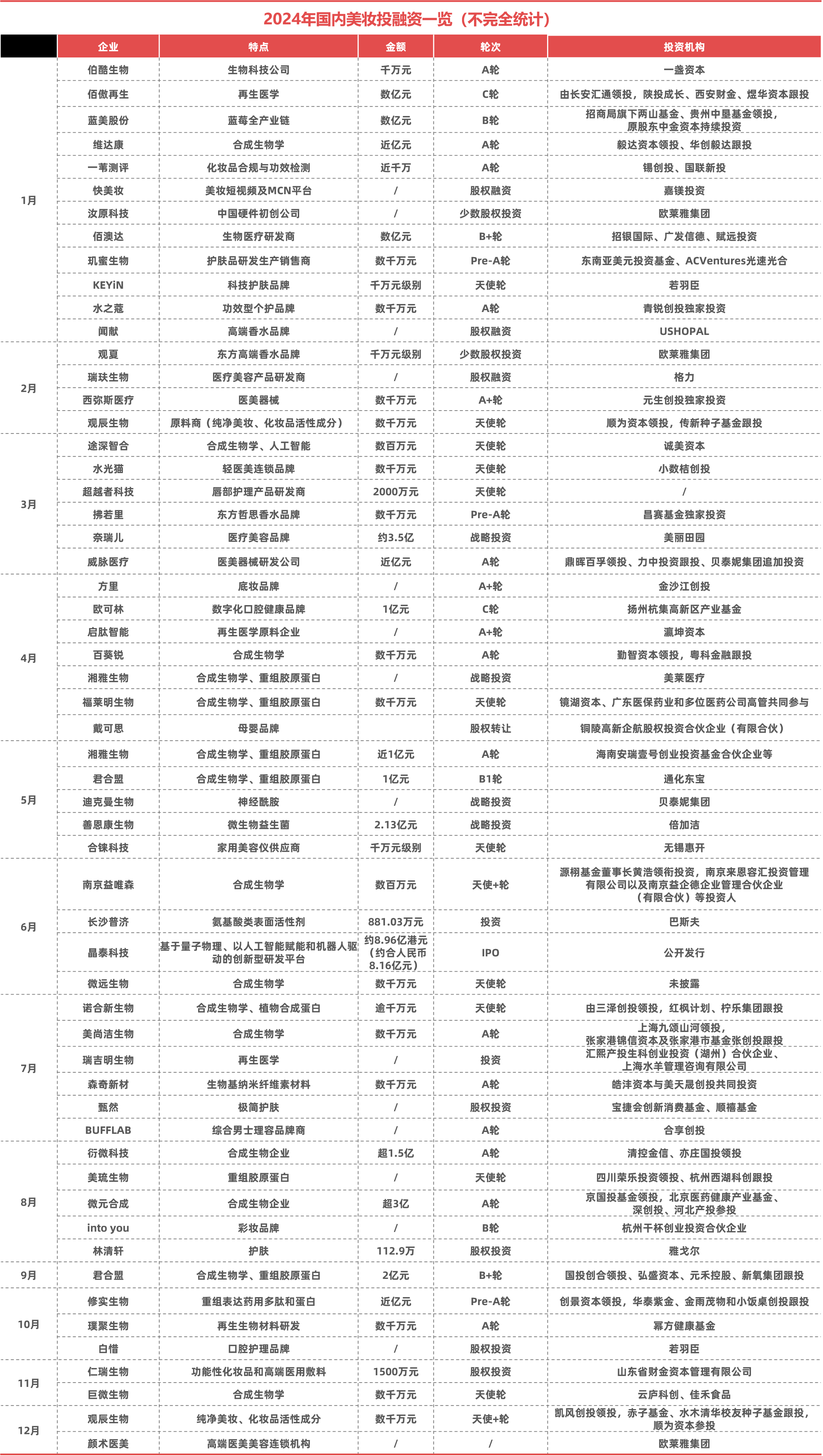 恢复常态的2024年被看作一个新的开始——发生在国内美妆产业的投融资交易(含IPO、收并购)超过60例。