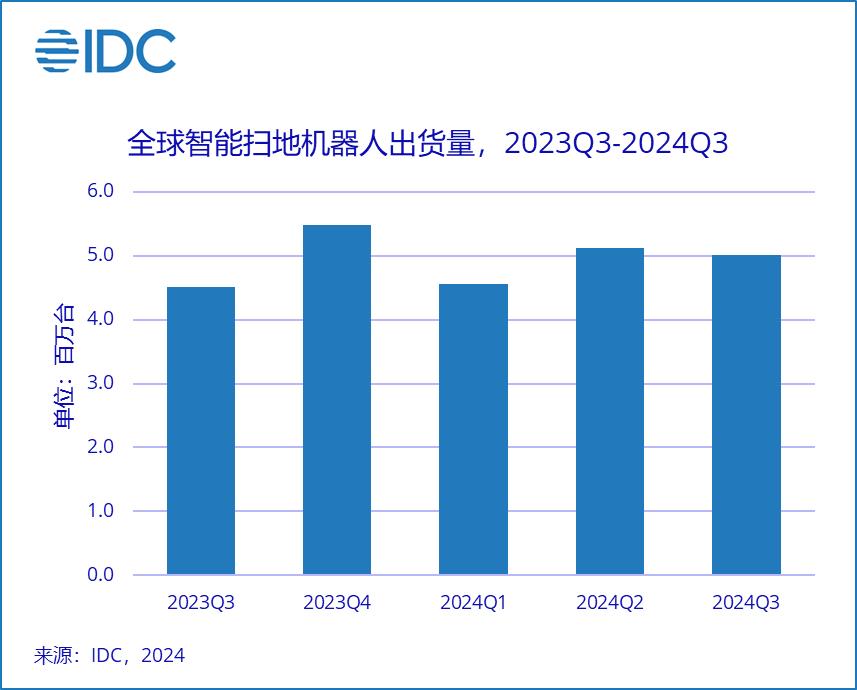 从行业销量增速来看,扫地机市场最难的时刻其实已经过去了。在中国市场,2022年扫地机器人的销量同比减少了24%、2023年又几乎与2022年持平。但今年已经在缓慢复苏,IDC最近发布的数据显示,三季度国内市场扫地机器人出货量为132.1万台,同比增长了17%。