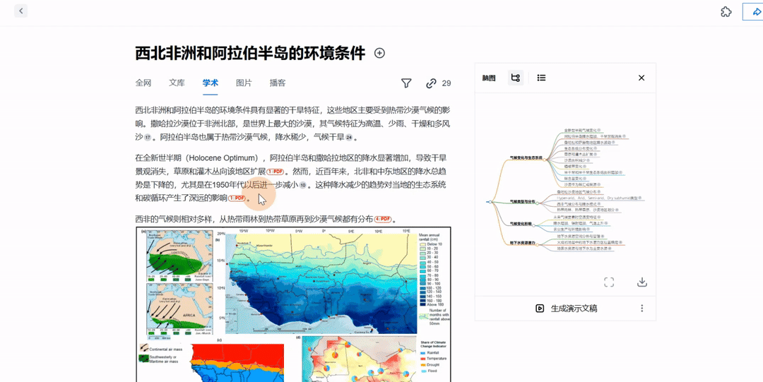 用户可以通过自然语言与AI进行更深入的交互,直接获取经过整理和分析的高质量信息,甚至可以让AI根据搜索结果自动生成报告、文章等内容。