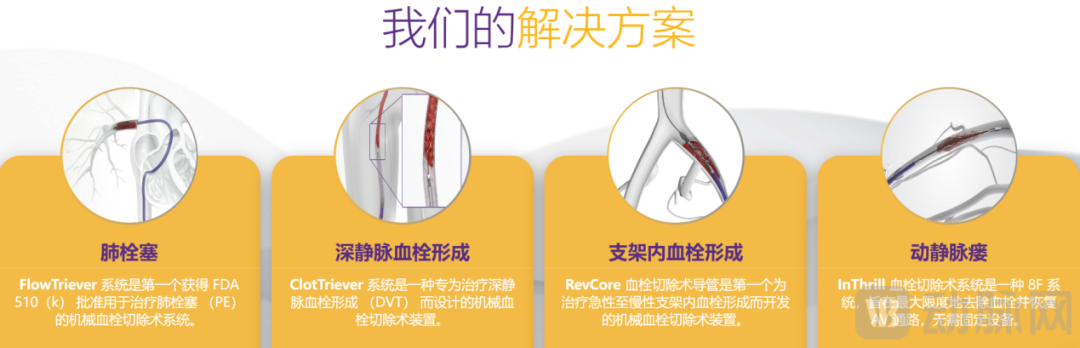 资料显示,Inari Medical成立于2011年,是一家外周介入领域领军型企业,在2024年全球医疗器械公司百强榜中(2024 Medtech Big 100)排名第88。目前,Inari Medical主要专注用于治疗肺栓塞、深静脉血栓、静脉支架内血栓等疾病的外周介入产品,并为静脉血栓栓塞(VTE)患者提供系统的护理服务。
