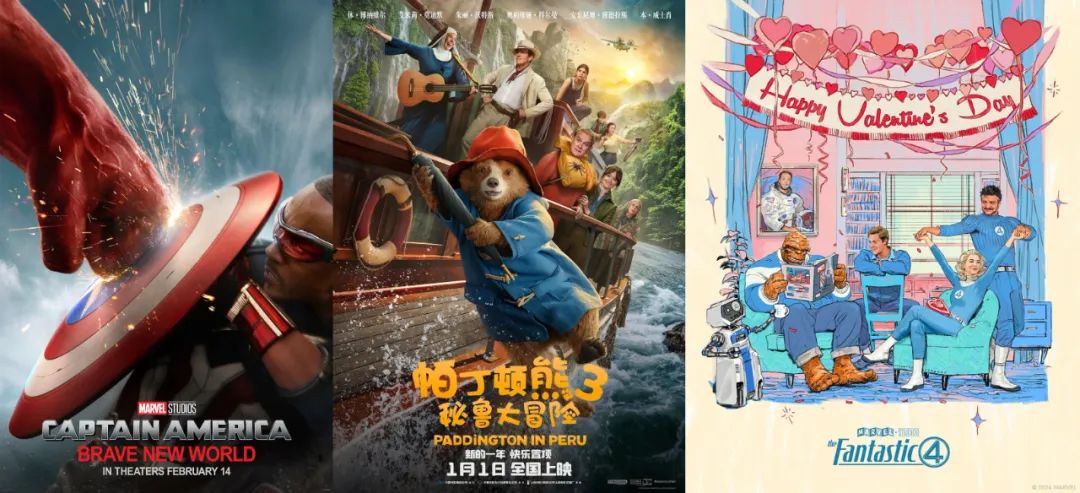 展望2025年,曾因双罢工而延期的多部新片蓄势待发,好莱坞制片厂的内容供应正重返常态,可望为北美市场的复苏进度再添一把火。作为迪士尼的排头兵,漫威影业将在今年推出三部院线电影:2月中旬,《美国队长4:美丽新世界》瞄准情人节,将携手同天亮相的索尼新作《帕丁顿熊3:秘鲁大冒险》,一道为“总统日”公共假期加温。5月初,《雷霆小队》重回漫威常年占据的暑期档“头炮”位置,再加上7月底登场的《神奇四侠:第一步》,众多人气角色将组队跃上大银幕,共同开启“漫威电影宇宙”的新篇章。