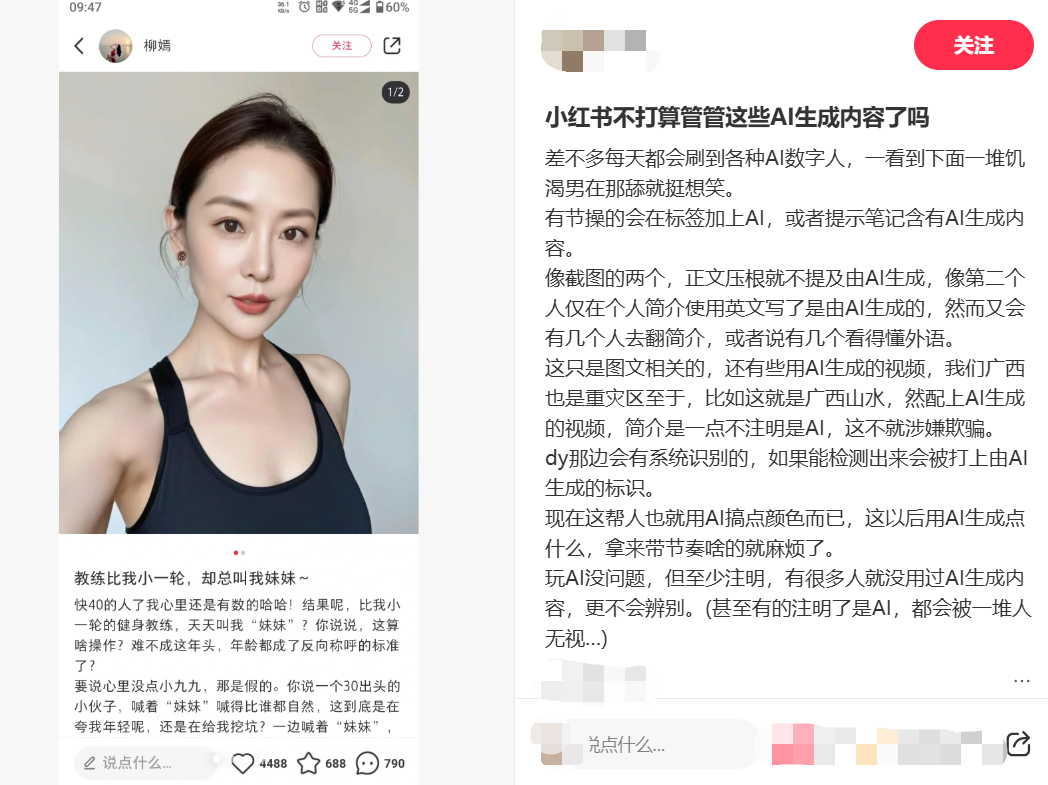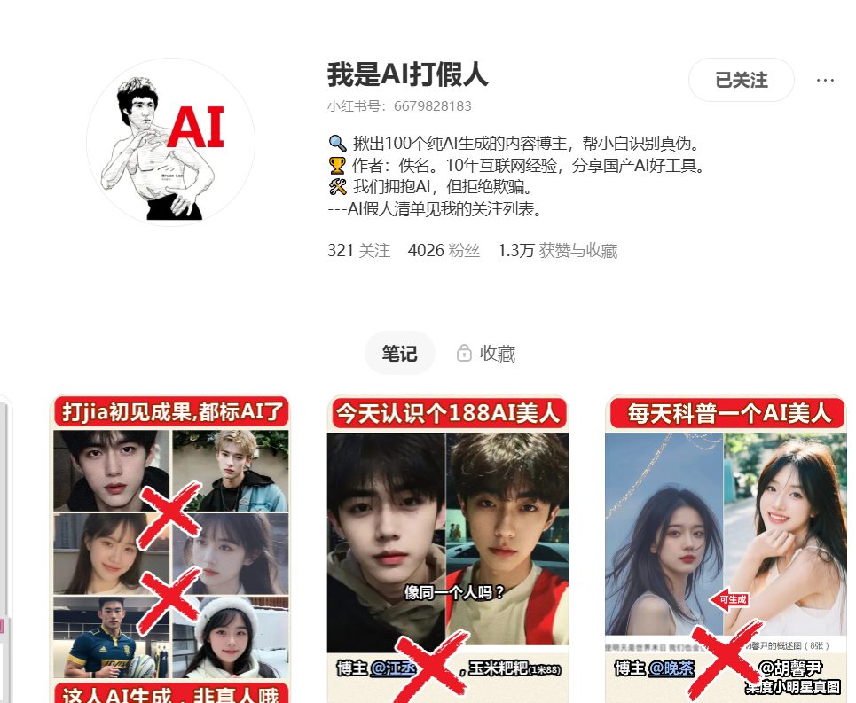 2024年下半年,有网友称自己在小红书上通过账号矩阵管理软件同时操控1327个AI美女账号,没有任何一个被平台识别出来。由于AI真人账号过多,小红书上还出现了专门打假的博主。