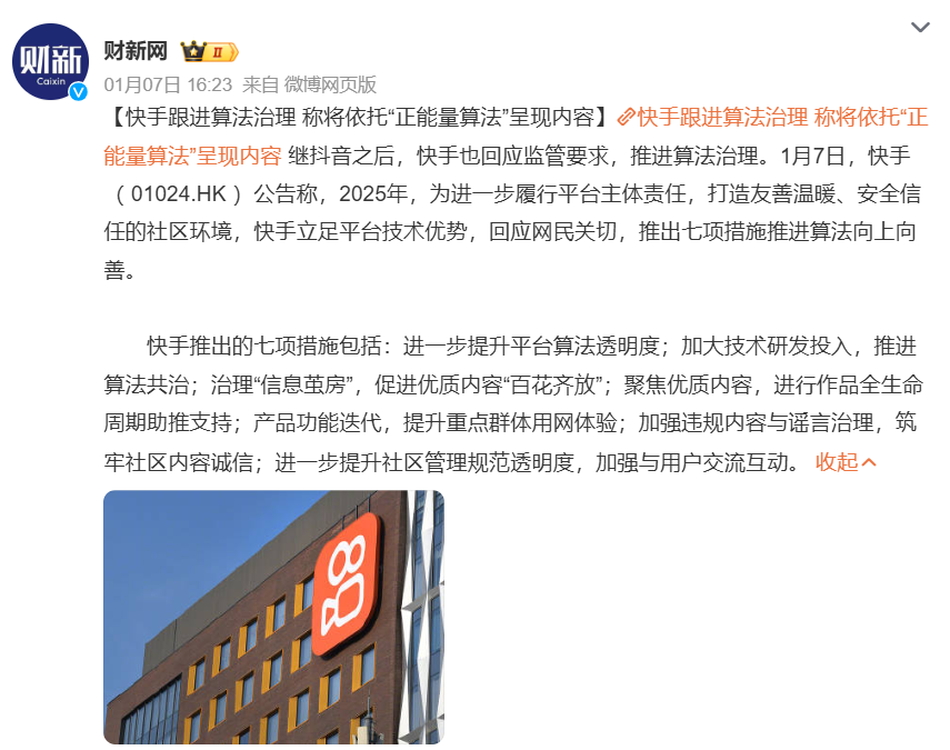 小红书在2023年启动了AIGC治理体系建设,对识别为疑似 AI 生成的内容进行显著标识;抖音也在2023年、2024年陆续发布了《关于人工智能生成内容的平台规范暨行业倡议》《 AI生成虚拟人物治理公告》等一系列公告,并持续对多种AIGC造假内容进行严厉打击;今年1月,快手还在站内开设了“辟谣”榜位,通过官方账号转发辟谣作品,利用算法优化,增加辟谣内容曝光量,同时将辟谣信息精准推送给曾浏览过相关谣言的用户。