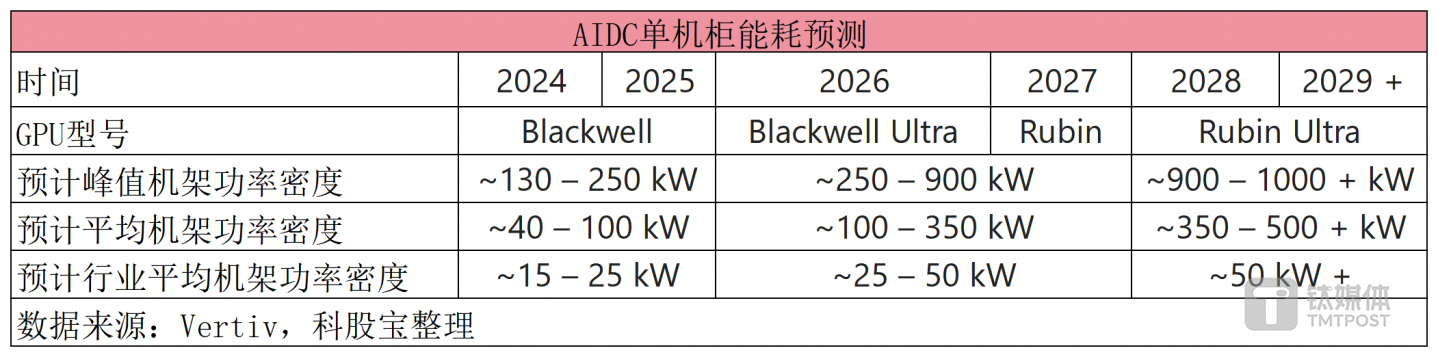 从能耗角度来看,随着GPU芯片功耗不断提升,单台AI服务器以及单机柜功率持续提高。据 Vertiv预测,2023—2029年全球新增智算中心总负载将达100GW,每年新增约13-20GW。