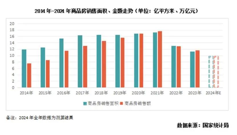 图:2014-2024商品房销售面积、金额走势,来源:中房网