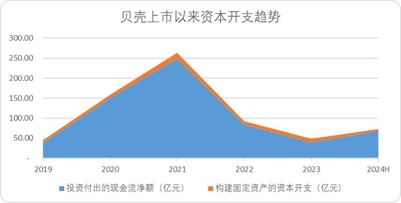 那么对于贝壳的管理层而言,平衡现阶段对外投资和对内利润分配是重中之重,毕竟管理层需要面对较强的内外部监管压力。自左晖离世以来,贝壳的资本开支出现了明显的下滑,而这与市场普遍的认知背道而驰,毕竟逆周期加大资本开支力度才能更快速的整合行业。
