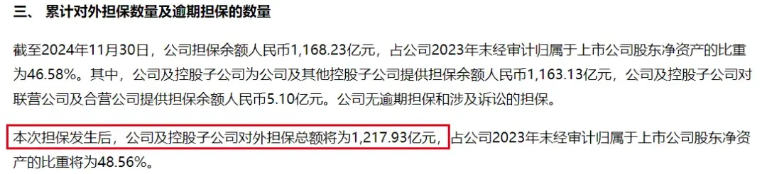 在1月15日万纬物流投资的担保之后,万科及控股子公司对外担保总额高达1217.93亿元。