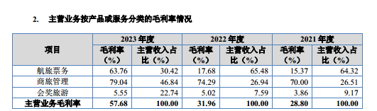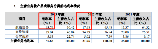 可见,商旅管理的毛利率始终高于70%,而航旅票务2023年的毛利率却突然飙升从2022年的17.68%飙升至63.76%。这不禁令人疑惑,2023年美亚科技的航旅票务到底做了何种改变,为何毛利率能如此飙升?