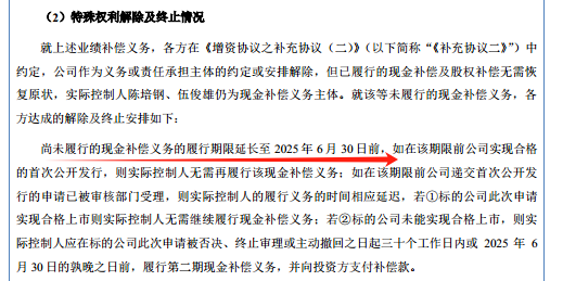 特别要说明的是,对于上述业绩补偿义务,双方之后又进行了重新约定,将尚未履行的现金补偿义务的履行期限延长至2025年6月30日前,而要求就是在该时间点前,若美亚科技成功上市,陈培钢、伍俊雄就不需要履行现金补偿义务,反之则将履行现金补偿义务。这也意味着,陈培钢、伍俊雄仍有800多万元的现金补偿义务“压在头顶”。