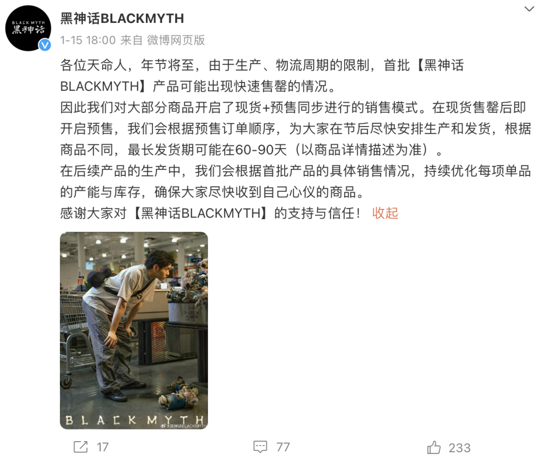 黑神话周边热度很高,但预售期太长,让人等得心焦。