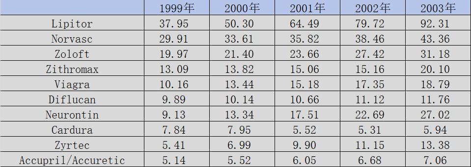 后来,立妥普成为单年营收规模突破百亿美元的“药王”级产品,至2009年已经累计为辉瑞贡献千亿美元营收,而氨氯地平、阿奇霉素、舍曲林、万艾可也成为营收数十亿美元级别的“爆款”。