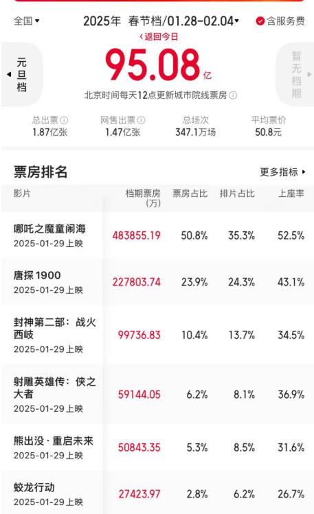 95.10亿,2025春节档再次刷新影史纪录,没有黑马逆袭,只有种子选手的滑铁卢。