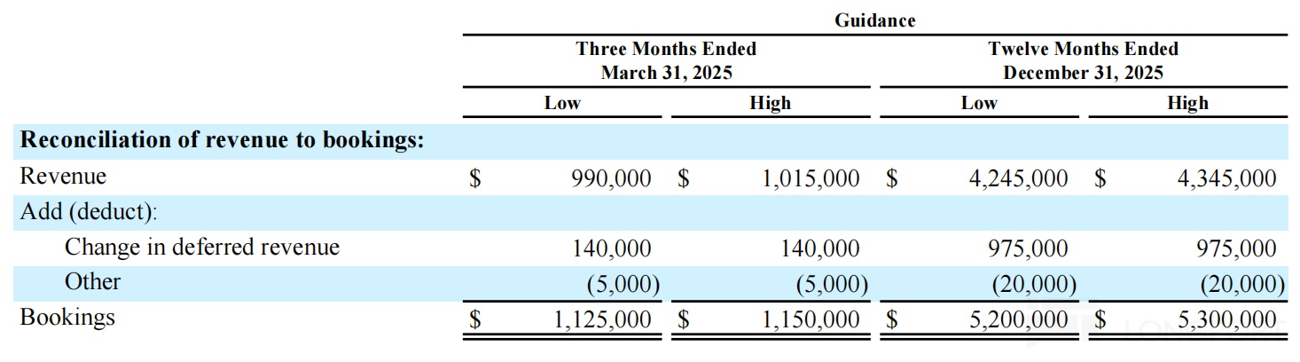 因此,对于 2025 年 Q1 的指引,管理层给出的展望仍然是高于 20% 的增速,预期 Bookings 会实现 11.3~11.5 亿,同比 22%~25%,小超市场预期的 11 亿。与此同时,预期 2025 全年 Bookings 达到 52~53 亿,同比 19%-21% 的增长,和 2024 年相比,增速略微放缓,但还是维持住了 20% 的高增长目标。