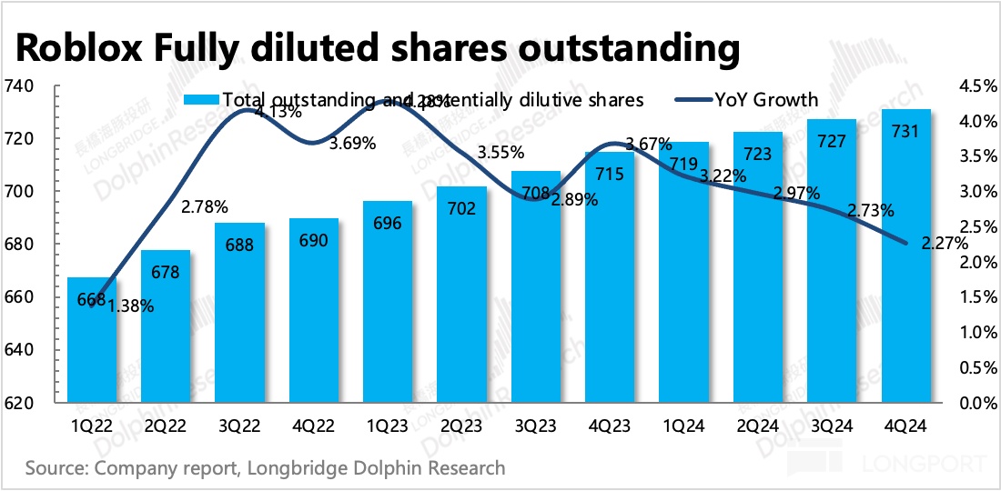 与此同时,因为 SBC 逐步收缩优化,四季度股权稀释比例也进一步回落到的 2.3%。