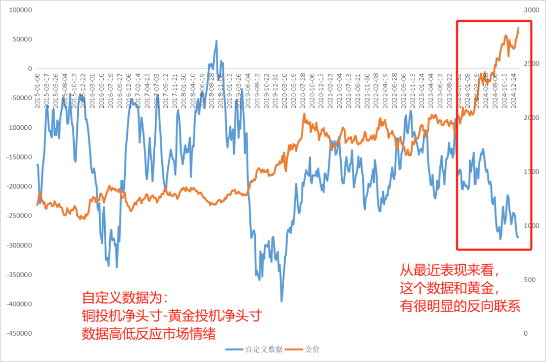 一个是自定义数据,用的是comex的铜的投机(非商业)净多头(多头-空头)合约数,再减去黄金的投机净多头合约数。