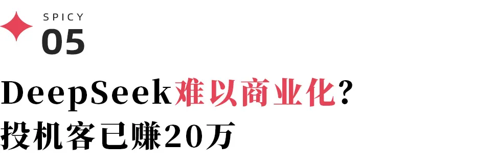 因尚未打通商业闭环,目前不论是DeepSeek公司、云服务商、互联网公司,还是智能硬件企业,其实都没有通过DeepSeek模型博取亮眼的业绩。然而,一批嗅觉敏锐的投机客,却已通过DeepSeek大肆掘金。