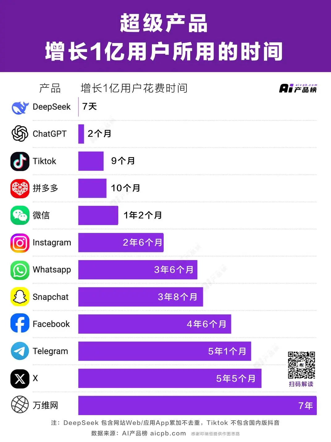 2022年11月上线的ChatGPT曾因2个月收获1亿用户而惊艳四方。没想到,DeepSeek上线仅7天,就收获了1亿用户,上线25天,便狂揽4000万次下载,超越ChatGPT首月下载量。