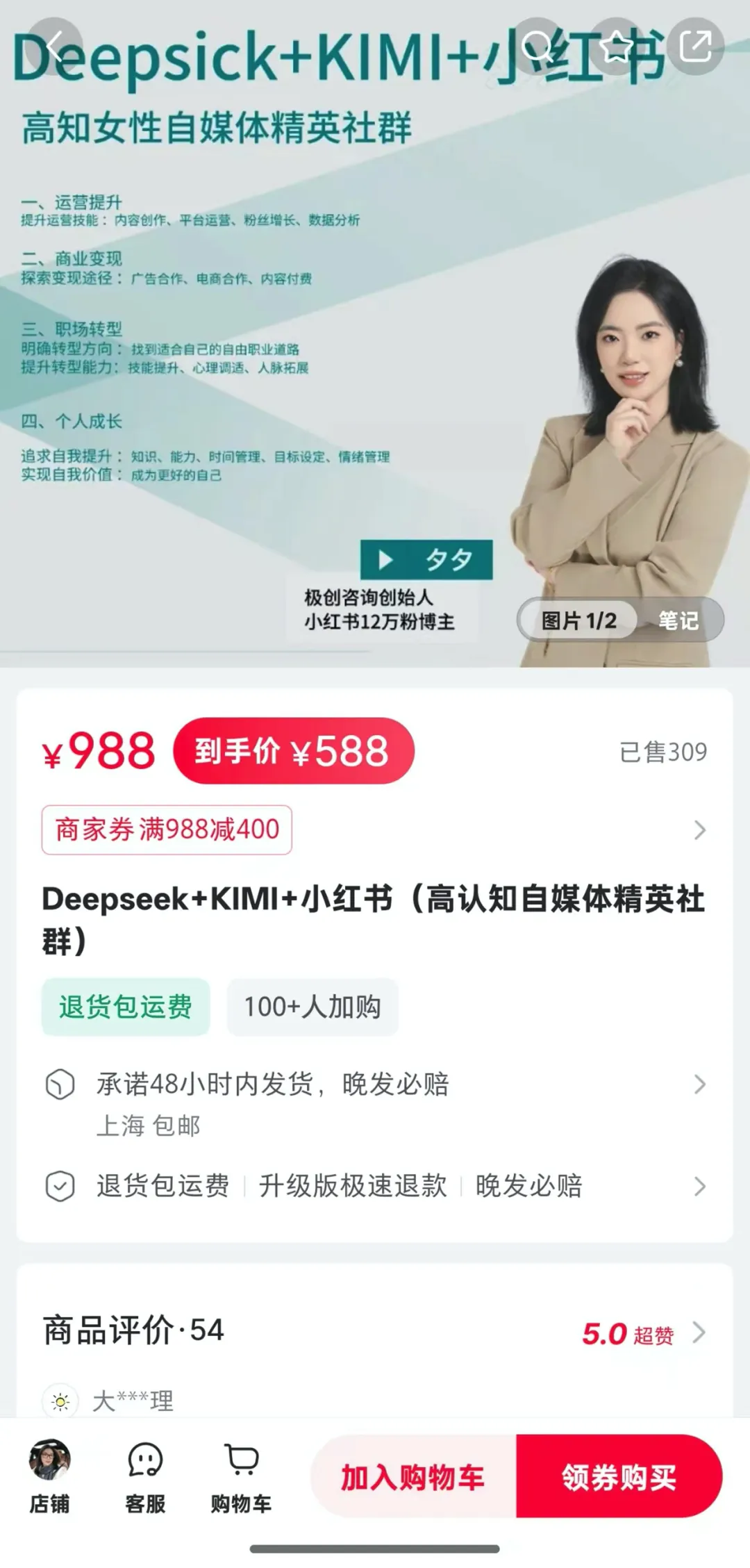 比如,在小红书平台,一名为《DeepSeek+KIMI+小红书(高认知自媒体精英社群)》的课程售价588元,目前已售309份。按此测算,该商家仅在该课程上已斩获18.17万元。