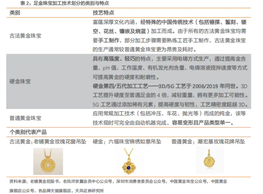 “手工、工匠、艺术”是奢侈品的重要卖点。而老铺黄金的古法工艺较其他黄金加工技术更具文化属性及精细化审美,尤其是需要手工制作,较普通黄金珠宝更为昂贵及耗时。