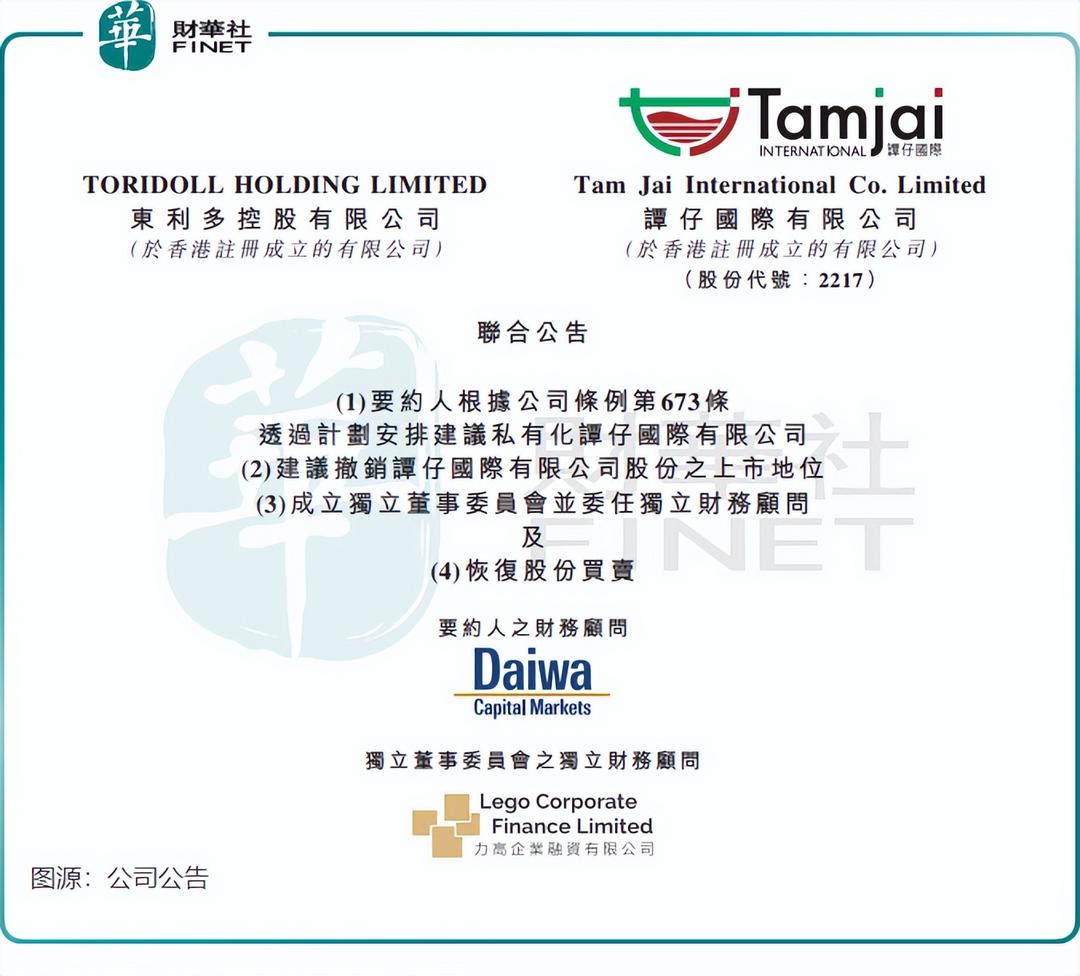 据悉,Toridoll日本是来自日本的知名多品牌餐厅集团,经营全球最大乌冬连锁店「丸亀制面」。谭仔国际在公告中表示,“作为日本的上市公司,Toridoll日本可进入资本市场进行筹资活动,并有能力获得更具竞争力的融资选择。此财务实力可以支持Toridoll日本及本公司的资本需求与长期发展。”“本公司将能够直接利用要约人更强大的财务实力为其未来投资提供资金。”
