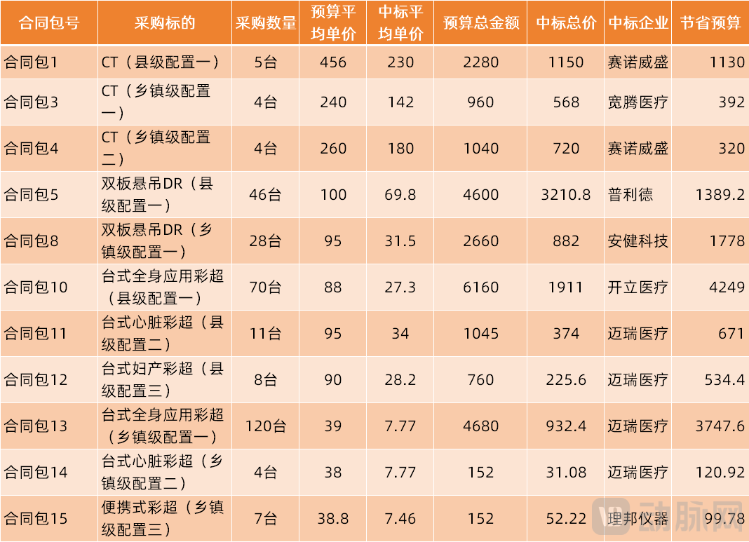 2025年1月底,四川省发布《县域医共体设备更新建设项目》中标公告。中标数据显示,去除废标后,共有11个合同包中标,相关预算达2.4亿元,中标总金额为1亿元,节省预算1.4亿元,节资率达58.33%。