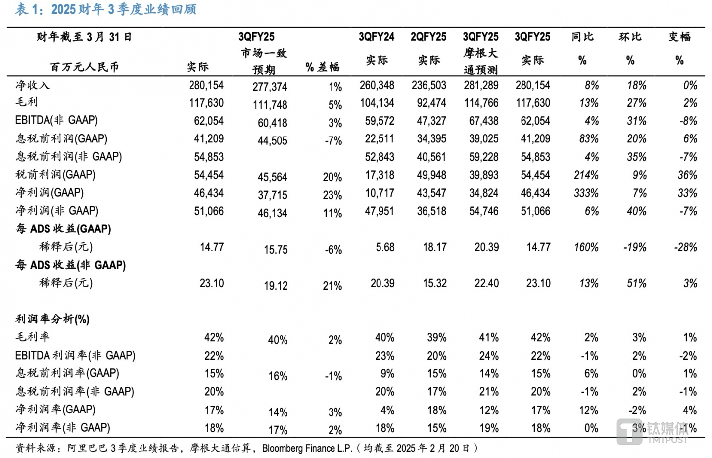 受宏观经济改善、国内以旧换新国家补贴提振,阿里业绩好于预期。