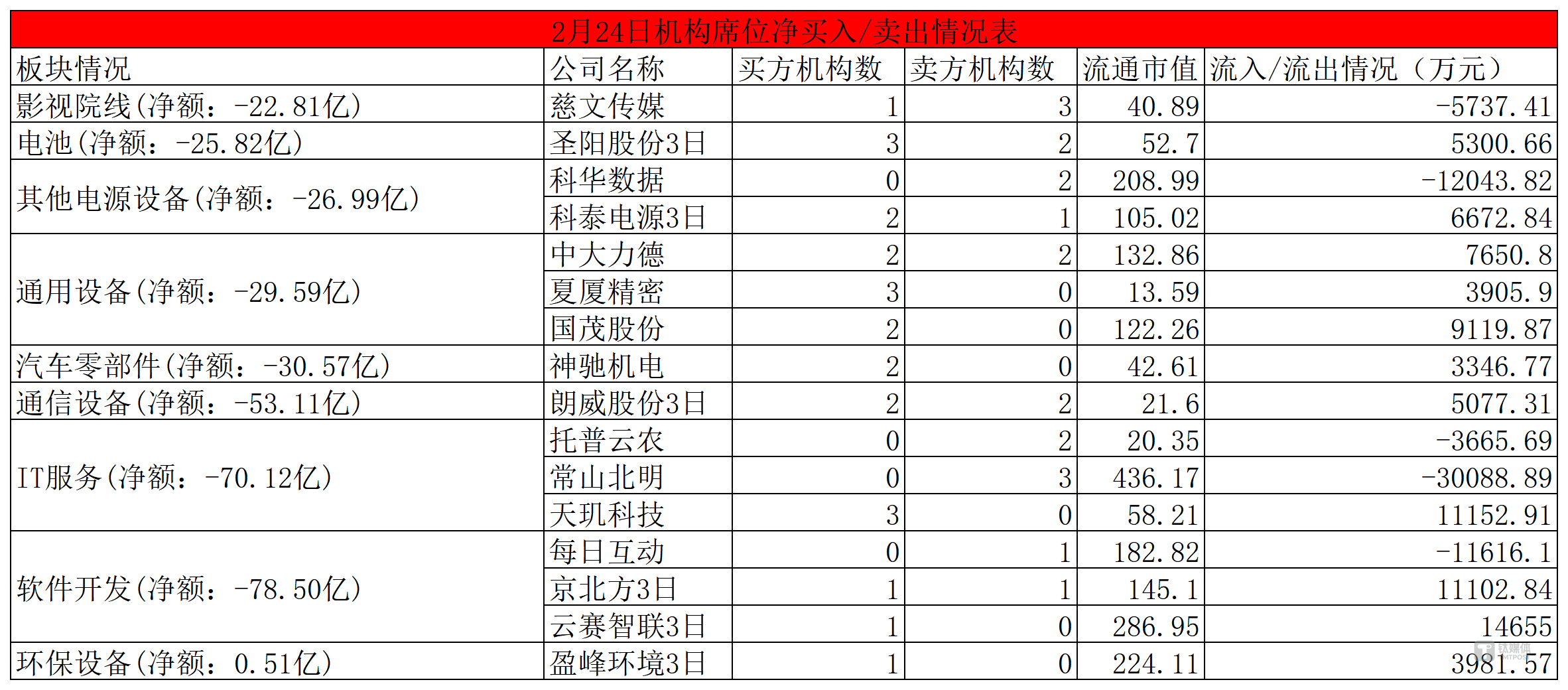 知名席位方面:(1)宁波桑田路席位:净买入自动化设备、通信服务,净卖出建筑材料(2)玉兰路席位:净买入农机,净卖出环保装备、专用设备。(3)温州帮席位:净买入光学光电子,净卖出影视院线、通用设备。(4)苏南帮席位:净买入通信服务、环保设备,净卖出IT服务。