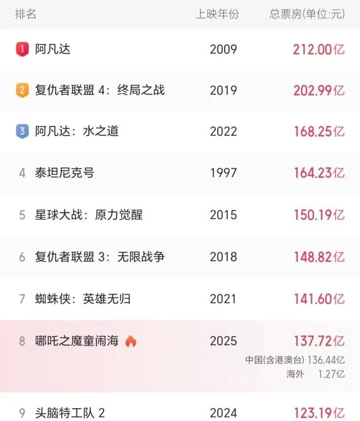 虽说上映近一月,但在持续不断的热搜和多刷率的助力下,《哪吒2》工作日票房仍保持在8000万级别,占今天大盘的80%左右,不俗的后劲、延期的秘钥,意味着《哪吒2》将朝着150亿+(20亿美元+)发起冲击,大概率会挤下《星球大战7》,跻身全球影史票房top5。