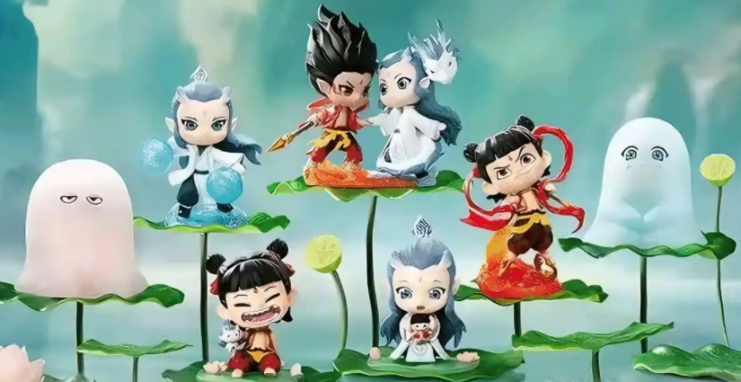 《哪吒2》爆火的同时,片方与泡泡玛特、万代、灵动创想等开发的盲盒周边等衍生品,短短几天内销售量便突破2亿元。其中,泡泡玛特的“天生羁绊系列”隐藏款,在闲鱼等交易平台被标价800元以上,但在泡泡玛特,其价格不过69元,溢价超过10倍,仍然有价无市,观众对《哪吒2》的喜爱程度,由此可见一斑。