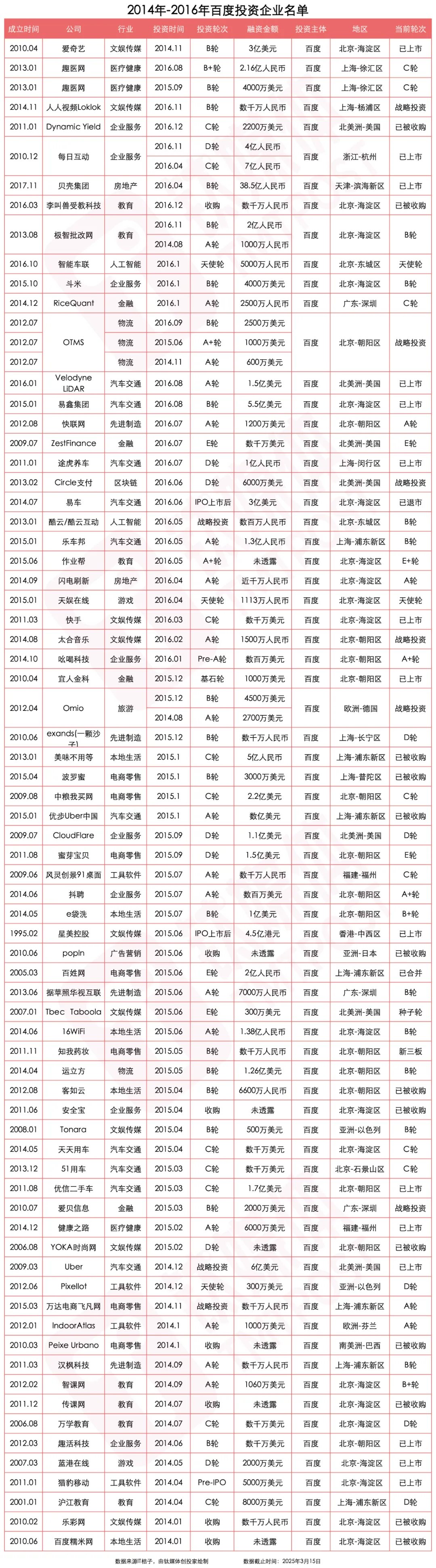百度风投投资活跃度还可以,就是不知道能不能帮百度成功转型。