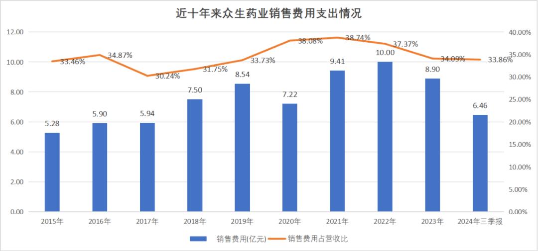 图:众生药业销售费用及占比,来源:锦缎研究院