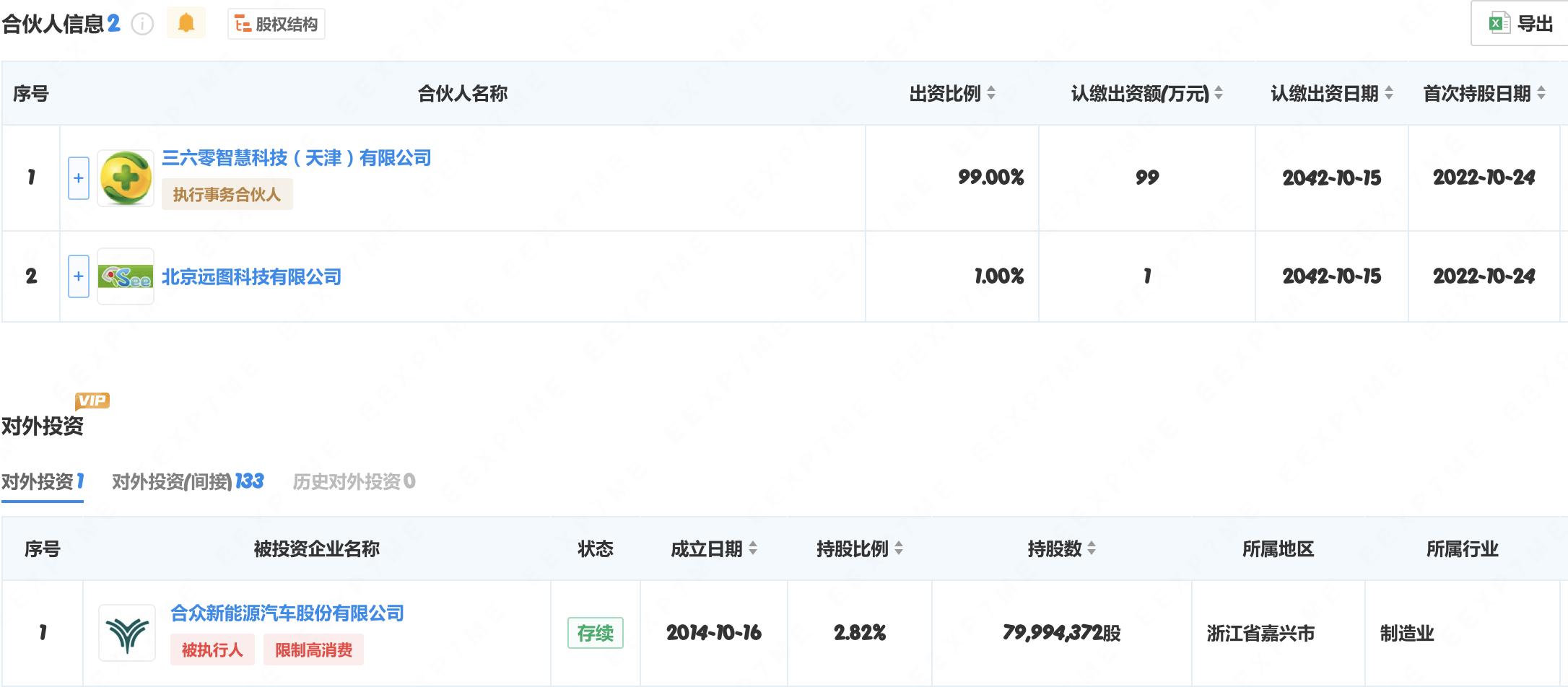 不过,最新数据显示,360占股99%的北京鸿金远图科技合伙企业只持股2.82%。
