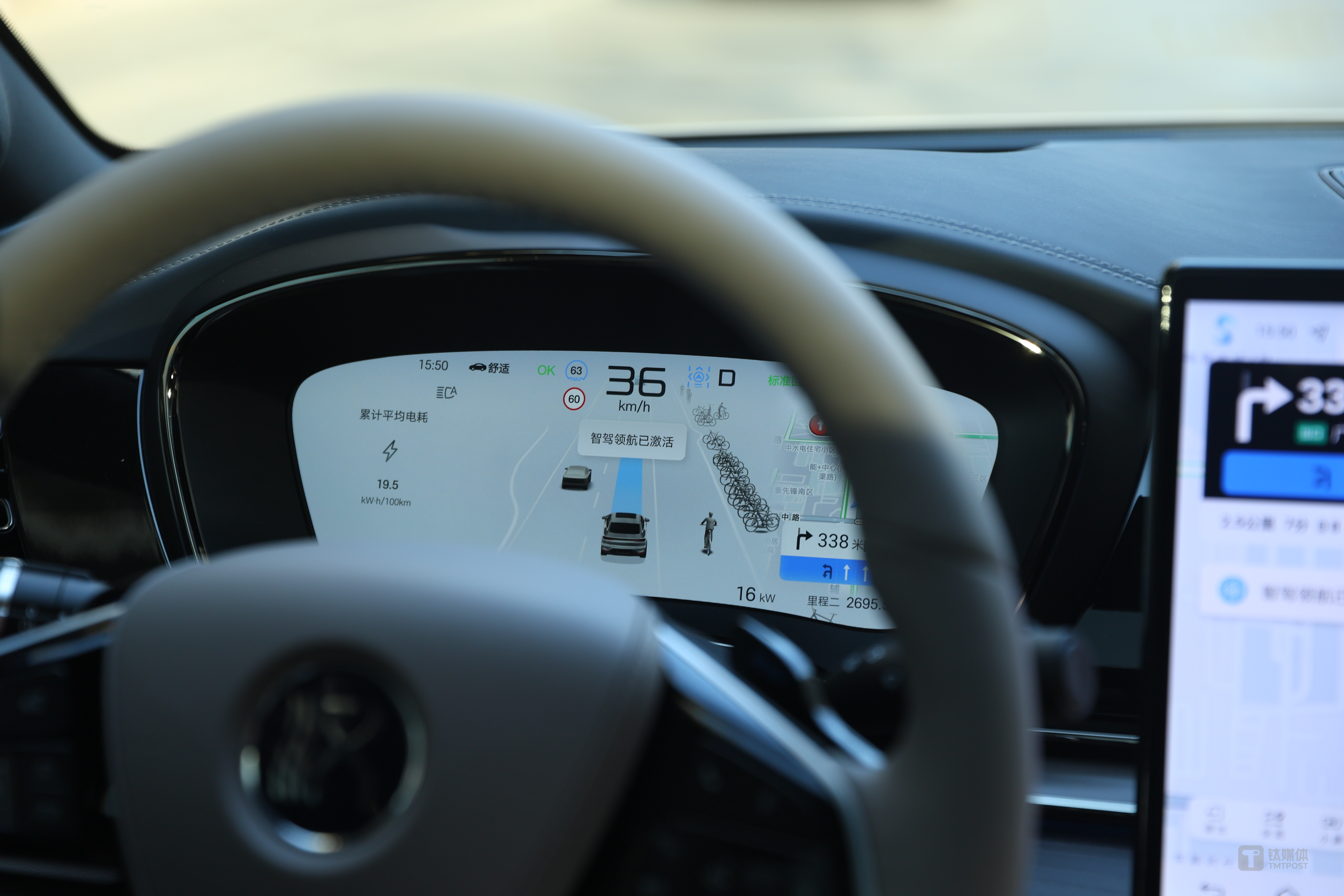 不可否认,在某些“诡异”路况,比如横冲直撞的电动车、逆行的三轮车或者路边突然开门的情况,我还是会提高警惕,时而会选择接管。但大多数城市场景下,汉家族智驾版足以应付,它已经带有几分人性化的“通勤助手”味儿了。