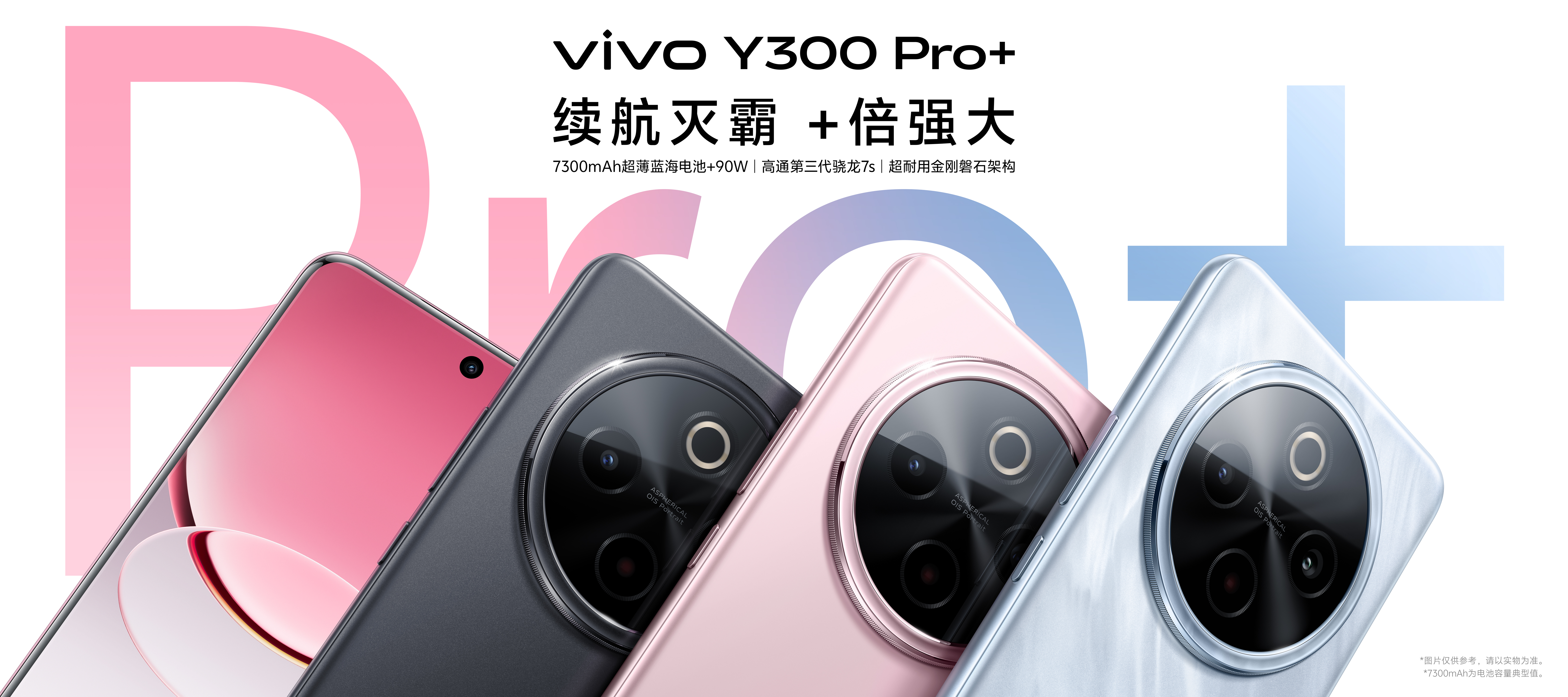 2025年3月31日,vivo正式发布Y系列全新产品——“续航灭霸 +倍强大”vivo Y300 Pro+。传承vivo Y系列一贯以来的优秀品质,vivo Y300 Pro+在续航、性能、耐用等方面实现全面升级。拥有vivo史上最强7300mAh超薄蓝海电池和90W 远航闪充、高通第三代骁龙7s、金刚磐石结构等强大配置。vivo Y300 Pro+的每一项升级都源于与用户的深入沟通,旨在满足用户需求,为用户提供更出色的用机体验,打造出一款好用、实用、耐用的国民手机!