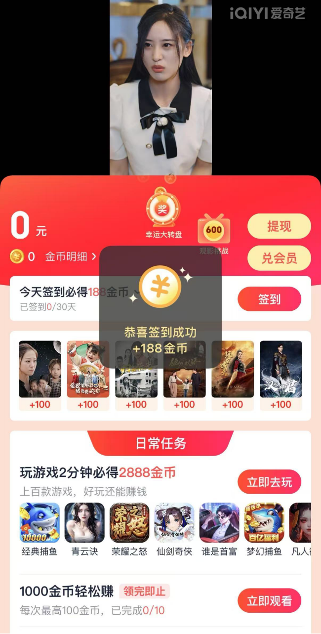 相比之下,2025年以来,爱奇艺极速版的日投放素材量从1000组上升到5000组。此外,爱奇艺极速版还有“看剧领红包”的活动用来激励用户。