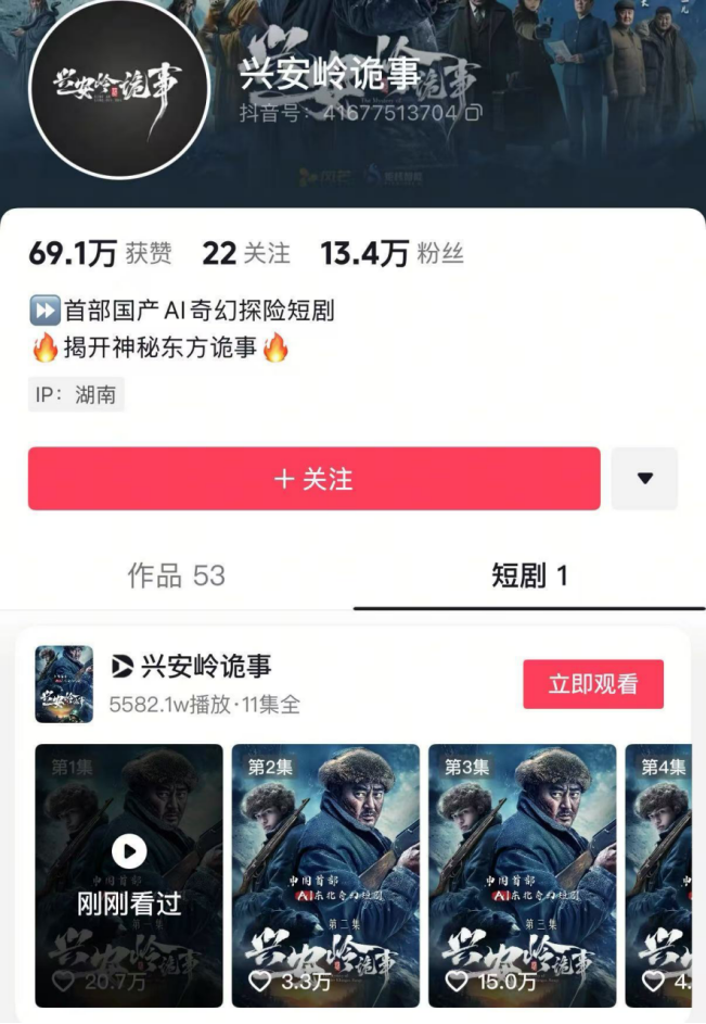 近日,抖音,以及“即梦AI”启动“AIGC短剧招募计划”,为短剧创作者提供现金和流量激励,要求视频内容50%以上需由AI技术生成。此前2月份,抖音上线了首部AIGC制作的付费短剧《兴安岭诡事》,目前播放量达到5600万。