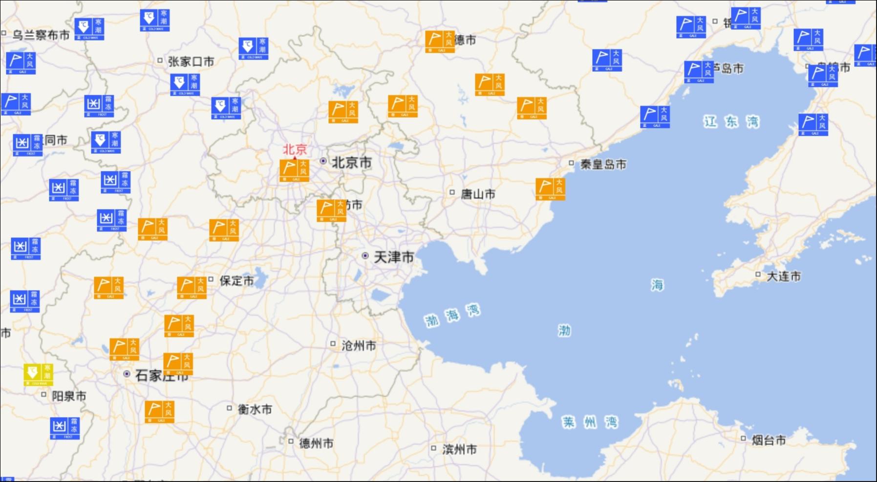 12时许,河北省气象台也发布了大风橙色预警信号。再加上此前天津连续发布的陆地大风橙色预警信号和海上大风橙色预警信号,京津冀均已进行了橙色预警。