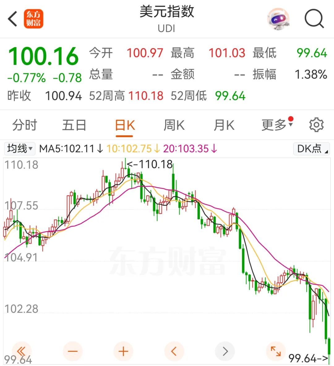 现在,特朗普主动动摇了这套货币体系;最近美元指数也在不断下跌。