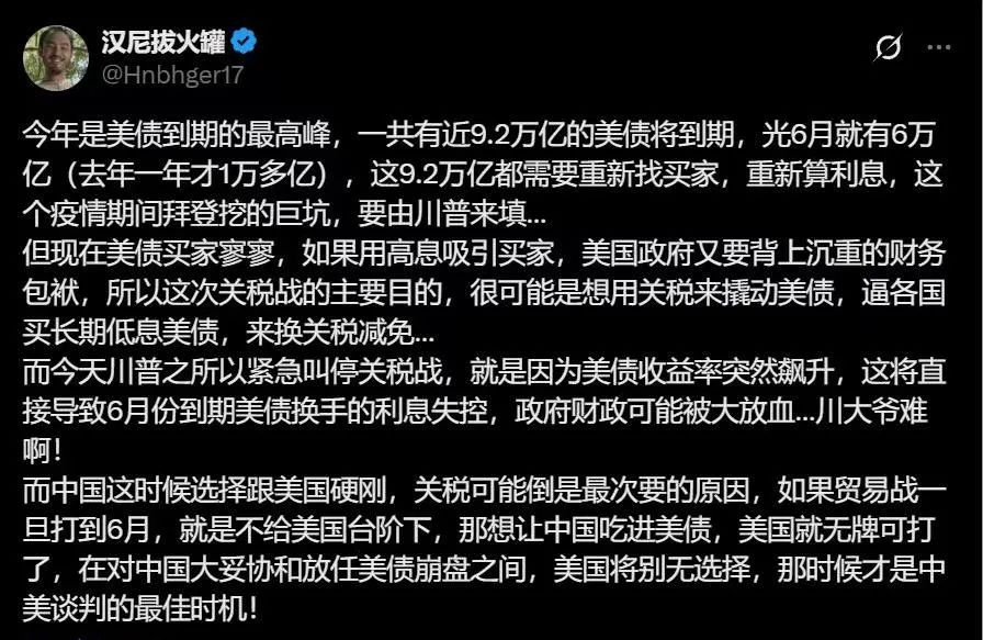 最新看到的数据是,美国今年共有近9.2万亿美债到期,6月就有6万亿,这就不光是支付利息的问题了,本金也要偿还。